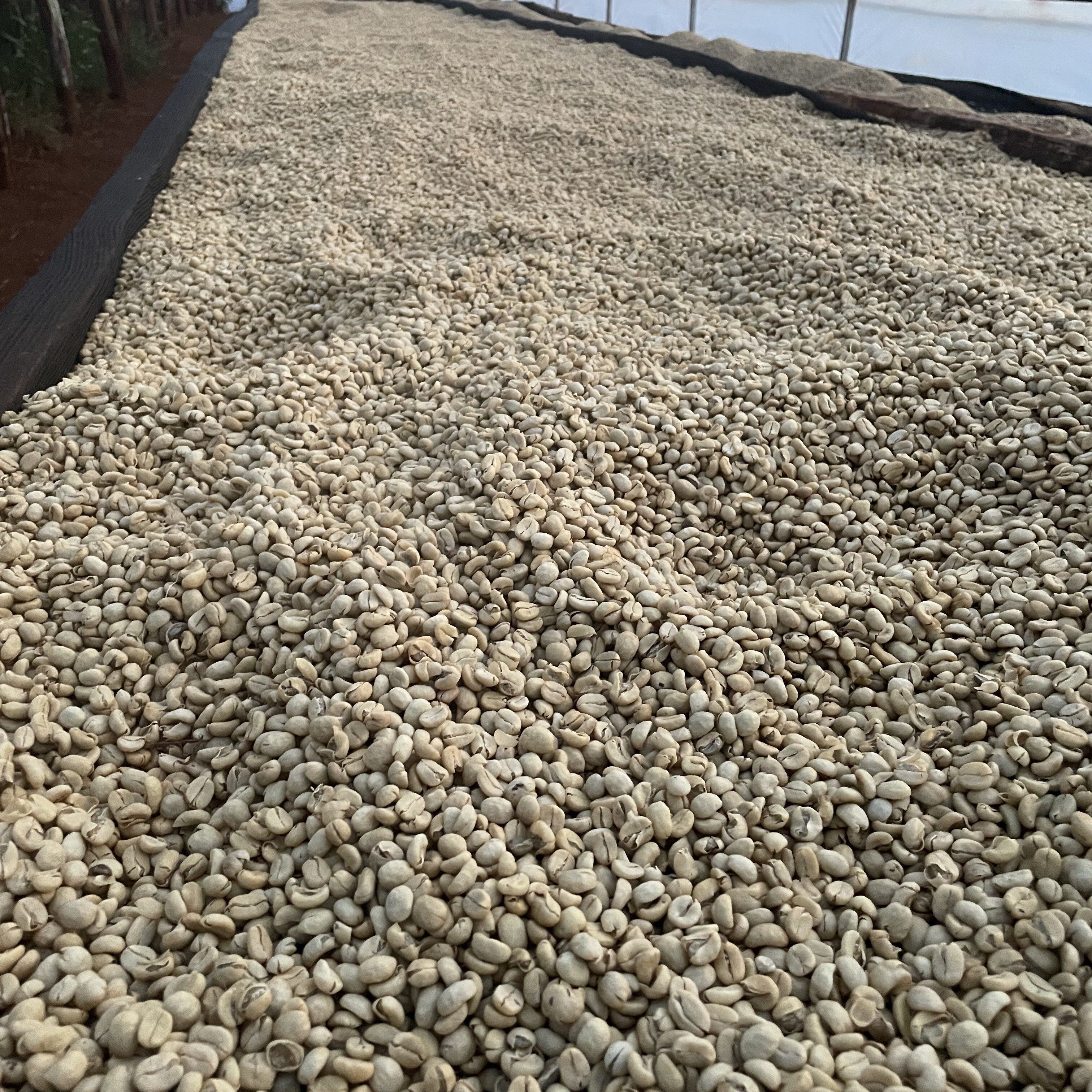 キイファクトリーでは選別へのこだわりが品質に直結していると理解しています。完熟したチェリーのみを集め、果肉除去を行います。発酵槽にて一晩ミューシレージ除去を行い、水洗いと同じ流れでグレーディングします。その後、アフリカンベッドで8~14日間かけて乾燥させます。環境負荷の低いコーヒー生産を目指しており、パルピングに使用する水は再利用されています。また、除去された果肉を肥料として利用することも奨励しています。